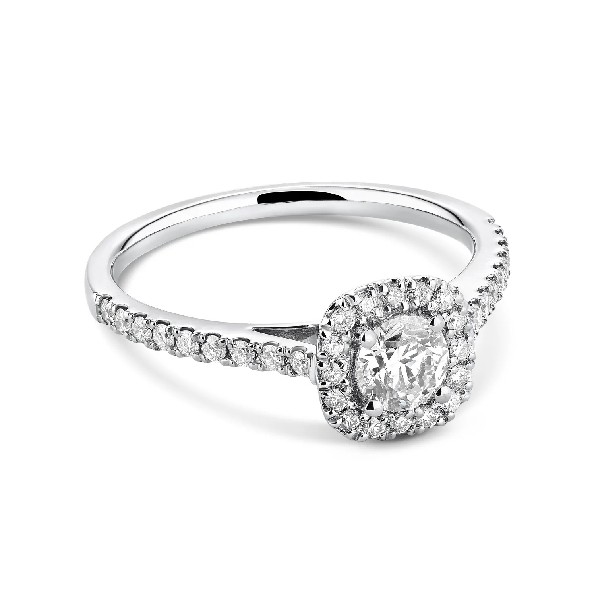 0.46ct Round Diamond Centre with 0.29ctw Diamond SI2-I1 Clarity; GH Colour Cushion Halo 14K White Gold Engagement Ring from the Faith Collection - Serial NUQNRTQS