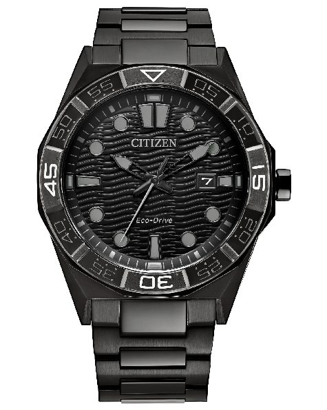 Stainless Steel with Black Ion Finish 42mm Case; J810 Movement; Sapphire Crystal; Monocromatic Dial with Grey Markers; Date Feature; Black Ion Finish Link Bracelet with Deployment Clasp the Brycen Watch by Citizen Eco-Drive Watch - Style AW1855-52E