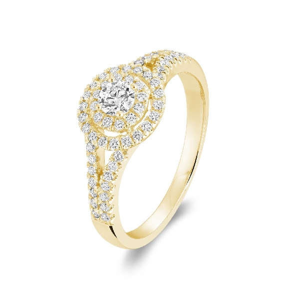 0.40ctw I1 Clarity; GH Colour Double Halo 14K Yellow Gold Engagement Ring