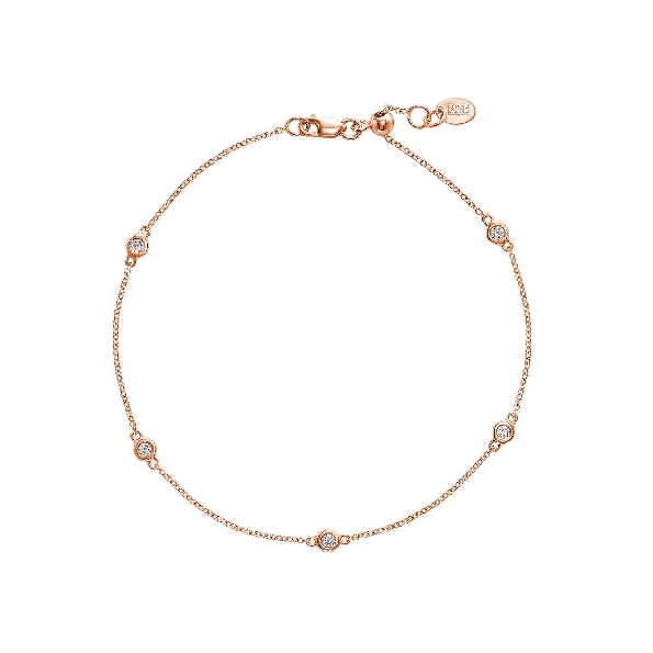 0.17ctw Diamond Bezel Multi Station 14K Pink Rose Gold Bracelet from the Joy Collection - 8 Inch Adjustable