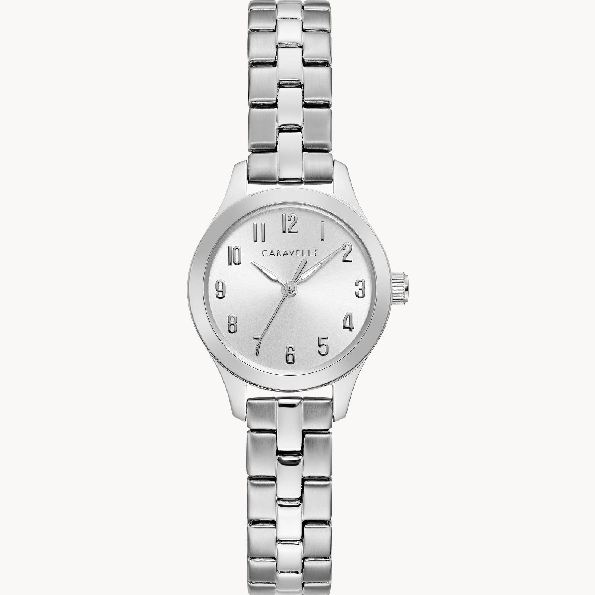 Stainless Steel 24mm Case; Silver-white Sunray Dial; Alternating Polished and Brushed Three-link Bracelet with Jewellers Clasp Closure Caravelle by Bulova - Style 43L209