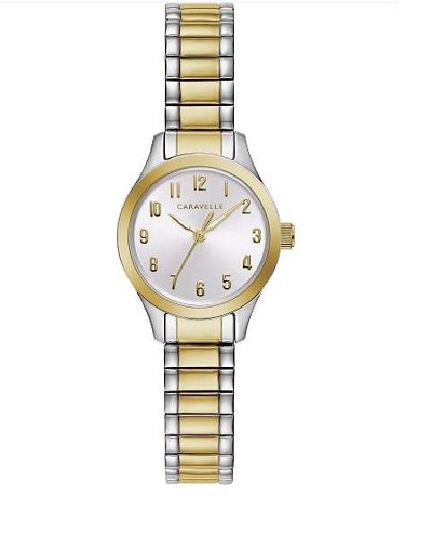 Stainless Steel Two-tone 24mm Case; Silver Dial and Two-tone Expansion Strap Caravelle by Bulova - Style 45L177