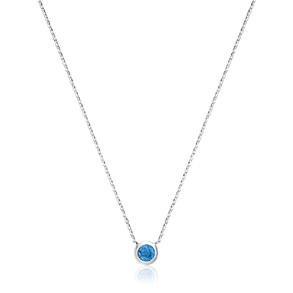 Blue Topaz Bezel Set 10K White Gold Necklace - 17 Inch MSRP: $299 SKU: 08-0410BZBT-3 Get more info on this Share: Share on Twitter Share on Pinterest Share on Facebook