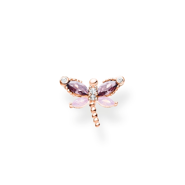 Single Multi-colour Cubic Zirconia and Glass Dragonfly Sterling Silver with 18K Rose Gold Stud Earring - Magic Garden Collection - Charm Club by Thomas Sabo - 25% Off Black Friday Event - Final Sale