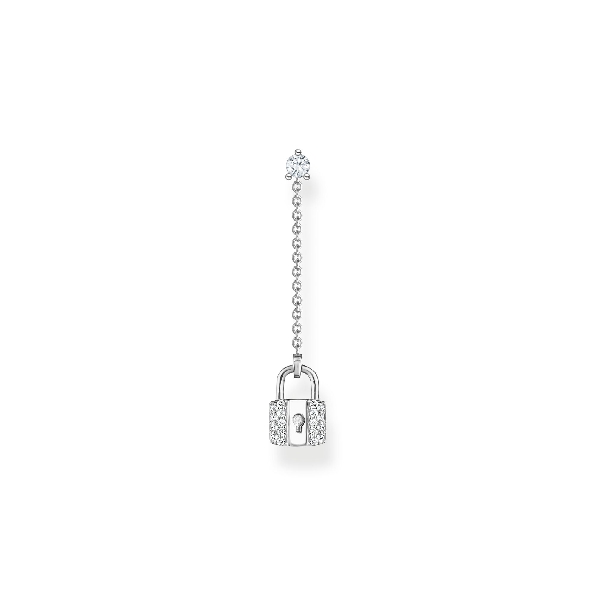 Single Cubic Zirconia Tiny Lock with Chain Sterling Silver Stud Earring - Symbols of Love Collection - Charm Club by Thomas Sabo - 40% Off Black Friday Event - Final Sale