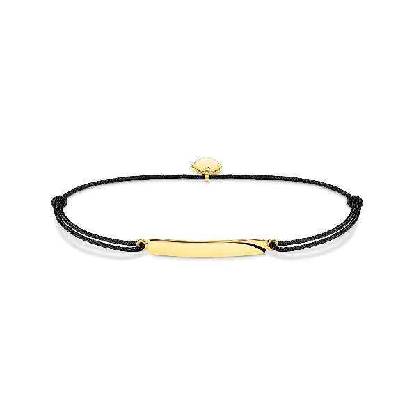 Classic Bar Engravable Sterling Silver with 18K Yellow Gold Finish with Black Nylon Bracelet - 5.5 - 8 Inch - Little Secret - Engravable Collection by Thomas Sabo - Final Sale - 40% Off - Final Sale