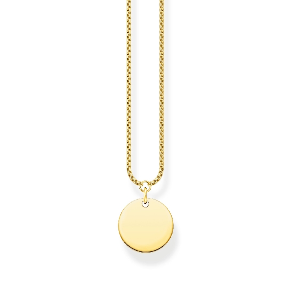 Round 13mm Disc Engravable Sterling Silver with 18K Yellow Gold Finish Pendant and Chain - 16 - 18 Inch - Engravable Collection by Thomas Sabo - 40% Off - Final Sale