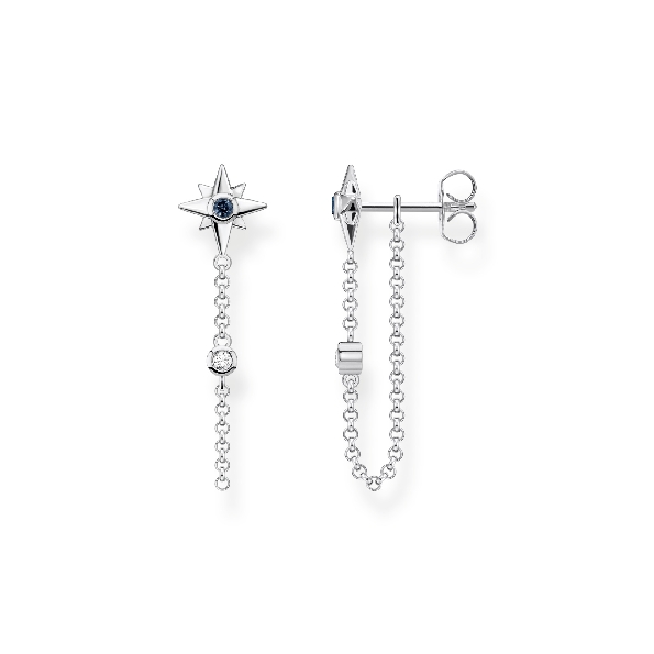 Royalty Star Blue and White Cubic Zirconia Chain Dangle Sterling Silver Black Finish Stud Earring - by Thomas Sabo - 40% Off Black Friday Event - Final Sale