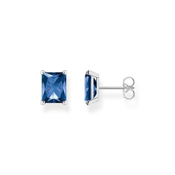 Sterling Silver Large Octagonal Dark Blue Glass-ceramic Stud Earrings - Ocean Vibes by Thomas Sabo - 25% Off - Final Sale