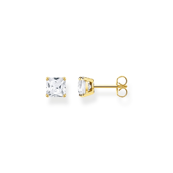 Princess Cut White Cubic Zirconia Sterling Silver with 18K Yellow Gold Finish Stud Earring - Rainbow Heritage by Thomas Sabo