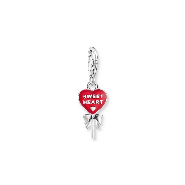 Red Enamel Sweetheart Lollipop Sterling Silver Charm with Lobster Clasp - As We Kiss Collection - Charmista Charm Club by Thomas Sabo