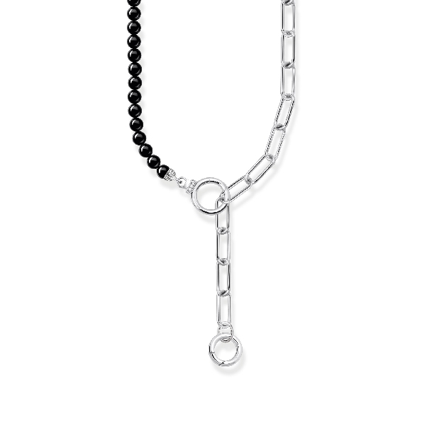 Oval Link with Black Onyx Bead Sterling Silver Charm Necklace with White Cubic Zirconia Ring Clasp - 19 1/2 Inch Adjustable - Cosmic Amulet Collection by Thomas Sabo - 25% Off - Final Sale