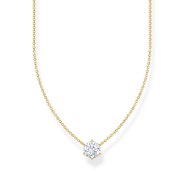 White Cubic Zirconia Round Station Sterling Silver with 18K Yellow Gold Finish Necklace - 15 1/2 - 17 1/2 Inches - The Essentials Collection - by Thomas Sabo