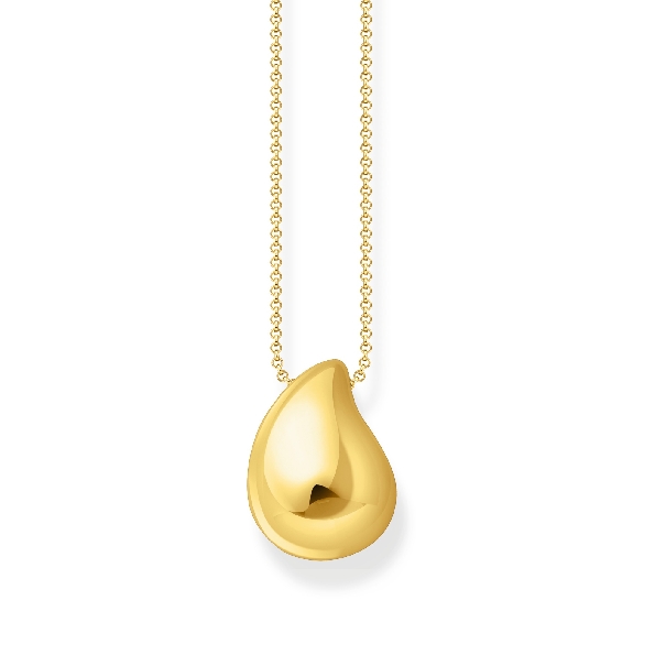 Sterling Silver with 18K Yellow Gold Finish High Polish Large Organic Curved Drop Slider Pendant and Chain - 17 1/2 - 19 1/2 Inch - Bold Elegance - by Thomas Sabo