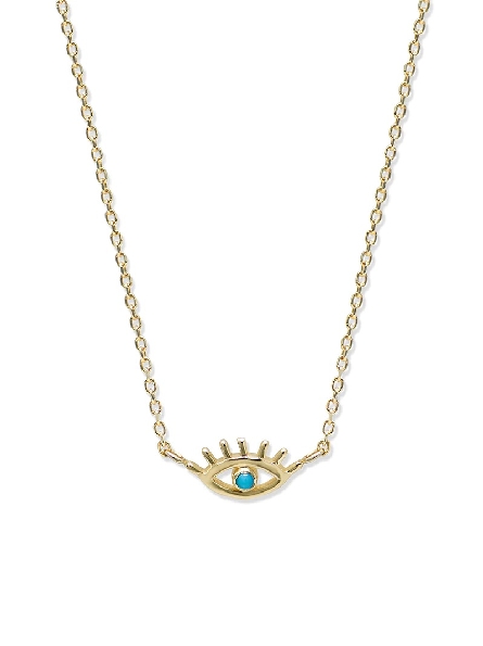 Evil Eye Lash with 1.5mm Turquoise 14K Yellow Necklace from the Anzie X Mel Soldera Collection by Anzie - 14 - 16 Inch