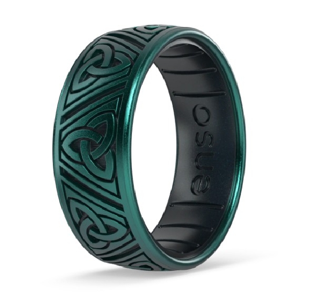 Etched Celtic Trinity Triangles Emerald/Black Pearl Silicone Ring by Enso Rings - Size 9 MSRP: $68 SKU: 840275972301 Get more info on this Share: Share on Twitter Share on Pinterest Share on Facebook