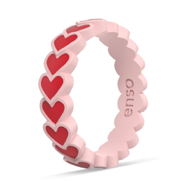 Hearts Accents Stackable Pink Sand/Red Silicone Ring by Enso Rings - Size 5 MSRP: $34 SKU: 840275985363 Get more info on this Share: Share on Twitter Share on Pinterest Share on Facebook