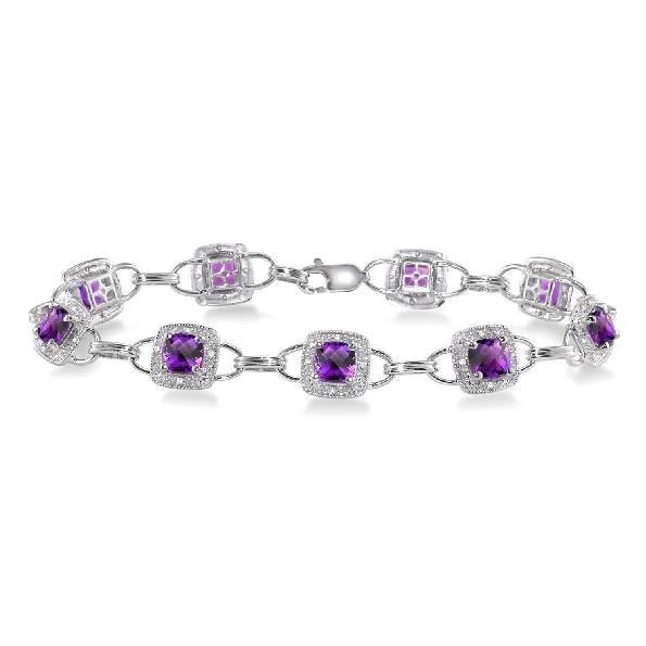 Cushion Amethyst with 0.15ctw Single Cut Diamond I1 Clarity; IJ Colour 10K White Gold Bracelet - 6 3/4 inch