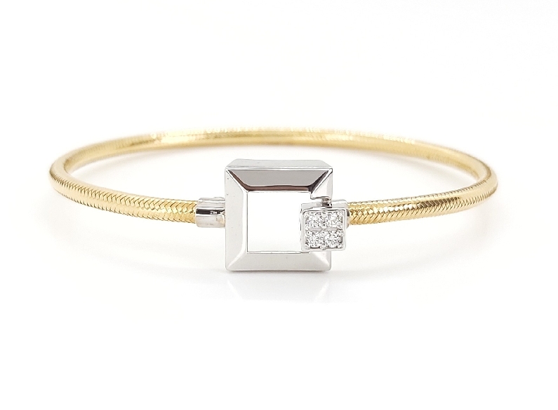0.08ctw Diamond Nobile Stretch 2.5mm Wrap 18K Two-tone Gold Cuff Bracelet with Square Sliding Bezel Lock by Ponte Vecchio Gioielli - 25% Off - Final Sale