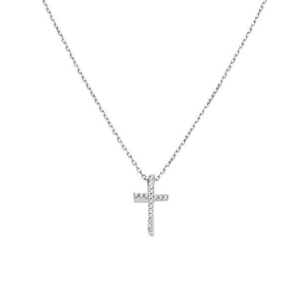 Sterling Silver Rhodium Finish 15mm White Cubic Zirconia Cross Pendant and Chain - 16 - 18 Inch Adjustable