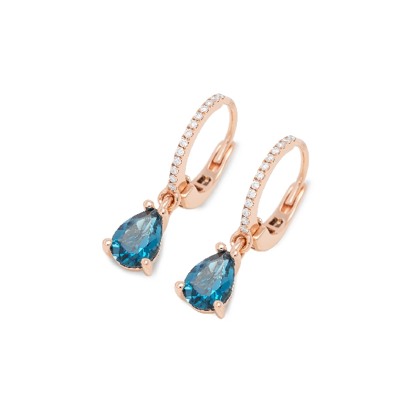 London Blue Topaz 1.55ctw Pear Dangle with 0.10ctw Diamonds 18K Rose Gold Earrings from the Iris Collection by Ponte Vecchio Gioielli