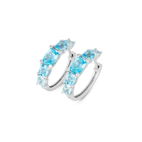 Mixed Blue Topaz Graduated Cushion 3.75ct with 0.04ctw Diamond 18K White Gold Oval Hoop Earrings from the Iris Collection by Ponte Vecchio Gioielli