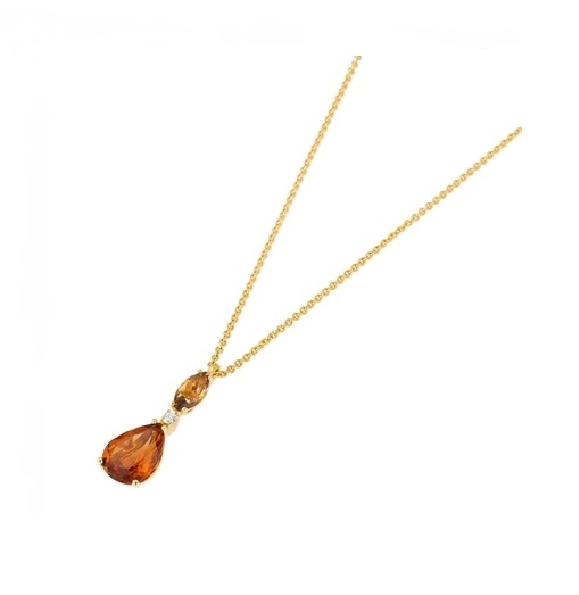 Golden Quartz Marquise 0.40ct and Citrine Pear 1.40ct with 0.02ctw Diamonds 18K Yellow Gold Pendant and Chain from the Iris Collection by Ponte Vecchio Gioielli - 18 Inch