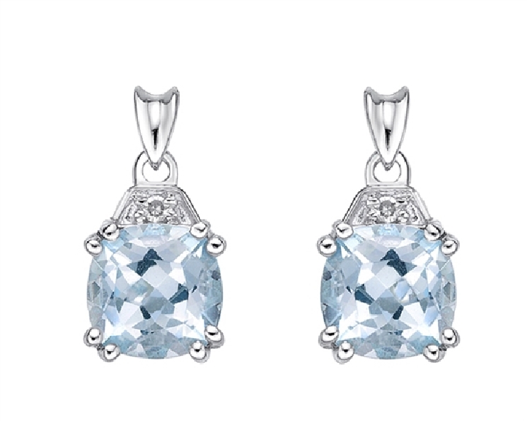 Cushion Shape light Blue Aquamarine with Diamond Dangle 10K White Gold Earrings MSRP: $625 SKU: EA00257-1 Get more info on this Share: Share on Twitter Share on Pinterest Share on Facebook