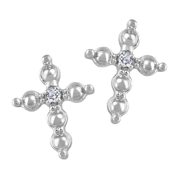 Mini Bead Cross Studs with 0.01ctw Diamonds 10K White Gold with Safety Backs from the My Baby Rocks Collection
