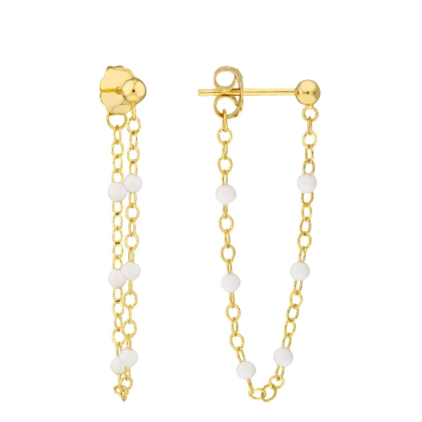 White Enamel Bead Front to Back 14K Yellow Gold Dangle Stud Piatto Link Earrings - Midas Collection MSRP: $235 SKU: EA00843 Get more info on this Share: Share on Twitter Share on Pinterest Share on Facebook