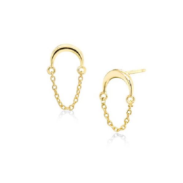 Crescent Moon with Chain Dangle Yellow Gold Plate Sterling Silver Stud Earrings MSRP: $35 SKU: EA40896 Get more info on this Share: Share on Twitter Share on Pinterest Share on Facebook