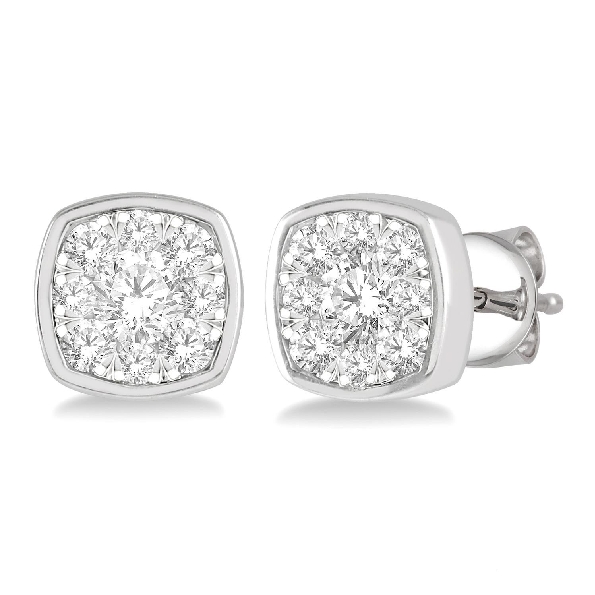 0.50ctw Diamond I1 Clarity; IJ Colour Cushion Bezel Love Bright Solitaire 14K White Gold Earrings MSRP: $1,650 SKU: EA40984 Get more info on this Share: Share on Twitter Share on Pinterest Share on Facebook
