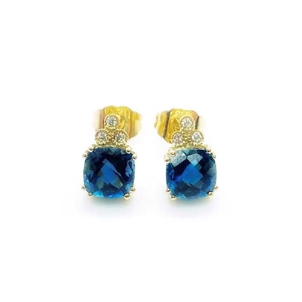 Faceted Cushion Shape London Blue Topaz with 0.03ctw Diamond 10K Yellow Gold Earrings MSRP: $750 SKU: EA41022 Get more info on this Share: Share on Twitter Share on Pinterest Share on Facebook