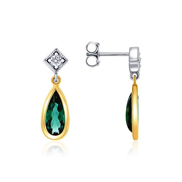 Bezel Set Pear Shape Green Tourmaline 1.77ctW with 0.11ctw Diamond 14K White and Yellow Gold Dangle Earrings