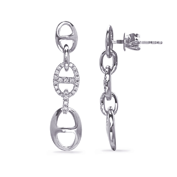 0.21ctw Diamond SI1 Clarity; G Colour Three Puffed Gucci Linked Station Design 14K White Gold Dangle Stud Earrings