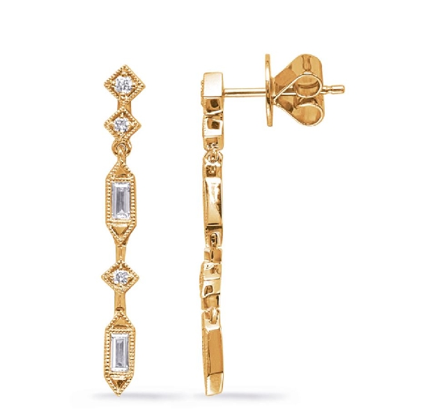 0.28ctw Baguette and 0.08ctw Round Diamond SI1 Clarity; G Colour Mixed Shape Drop Link 14K Yellow Gold Earrings
