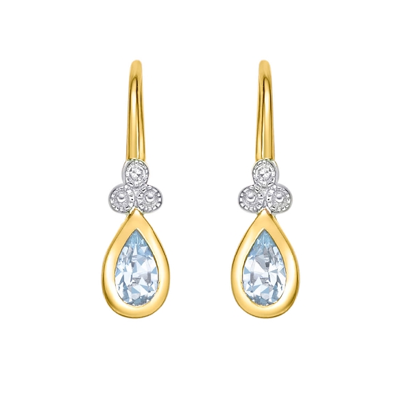 Pear Shape Blue Aquamarine with 0.035ctw Diamond 10K Yellow Gold Lever Back Earrings MSRP: $795 SKU: EA41628 Get more info on this Share: Share on Twitter Share on Pinterest Share on Facebook