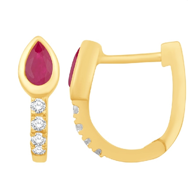 Pear Ruby with 0.13ctw Diamond SI1 Clarity; G Colour 14K Yellow Gold Huggie Earrings MSRP: $1,812 SKU: EA41774 Get more info on this Share: Share on Twitter Share on Pinterest Share on Facebook