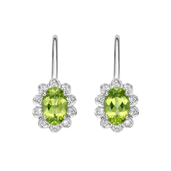 Oval Peridot and 0.08ctw Diamond 10K White Gold Lever Back Earrings SKU: EA41818 Get more info on this Share: Share on Twitter Share on Pinterest Share on Facebook