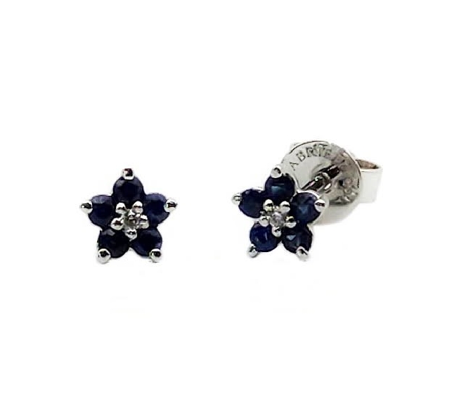 Blue Sapphire 0.21ctw with 0.01ctw Diamond Cluster 14K White Gold Stud Earrings from the Colour Collection by Gabriel & Co. - Serial No. S2174295 - (GIA Report No. 1525045285582)
