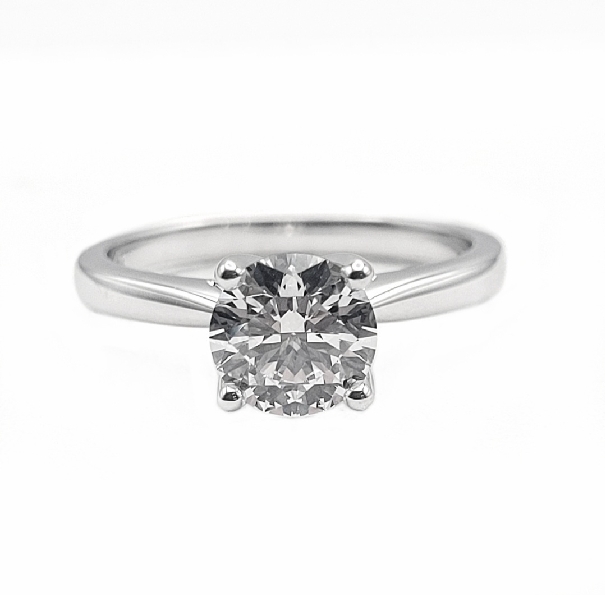 Lab Grown Round Brilliant Cut Diamond 1.10ct VS1 Clarity; D Colour; Ideal Cut; (IGI# LG499192022) set into Four Prong Solitaire 14K White Gold Ring