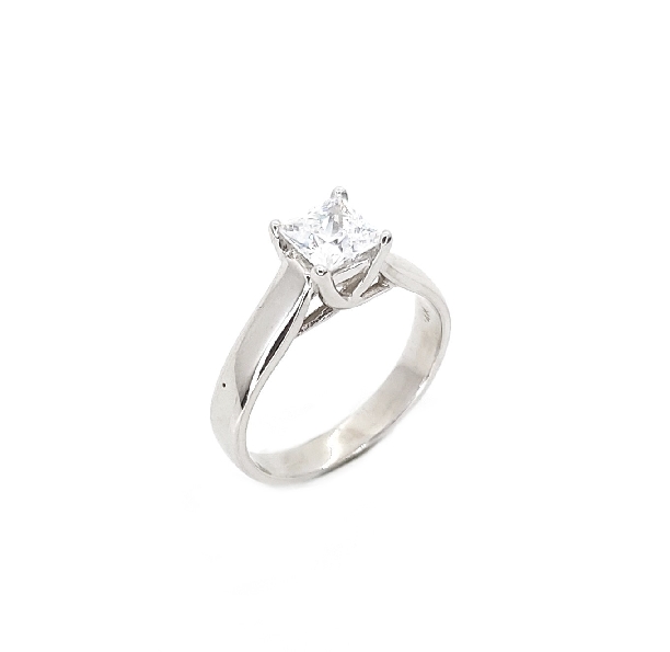 14K White Gold Solitaire set with Princess 5mm Cubic Zirconia Centre