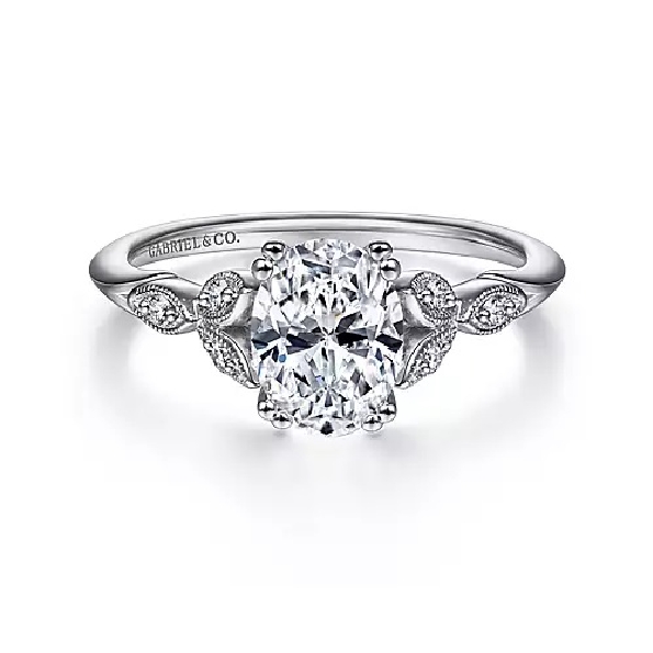 0.07ctw Diamond SI2 Clarity; GH Colour Floral Solitaire Set with Oval Cubic Zirconia Centre 14K White Gold Ring From the Victorian Collection by Gabriel & Co. - Serial No. S1755005