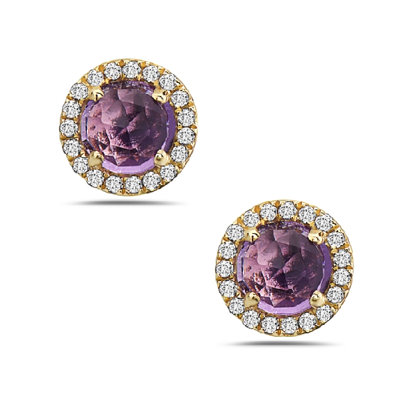 Round Amethyst with 0.08ctw Diamond Halo 14K Yellow Gold Earrings by Bassali Jewellery MSRP: $600 SKU: ER12250DA Get more info on this Share: Share on Twitter Share on Pinterest Share on Facebook