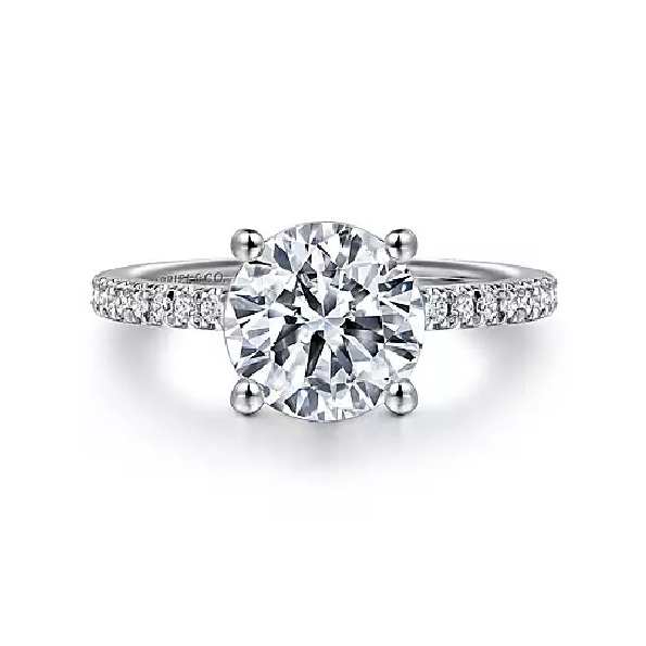0.19ctw Diamond SI2 Clarity; GH Colour Shoulder Accent Stones with Round Cubic Zirconia Solitaire 14K White Gold Ring Mount from the Classic Collection by Gabriel & Co. - Fits 8mm centre- Serial No. S1573575