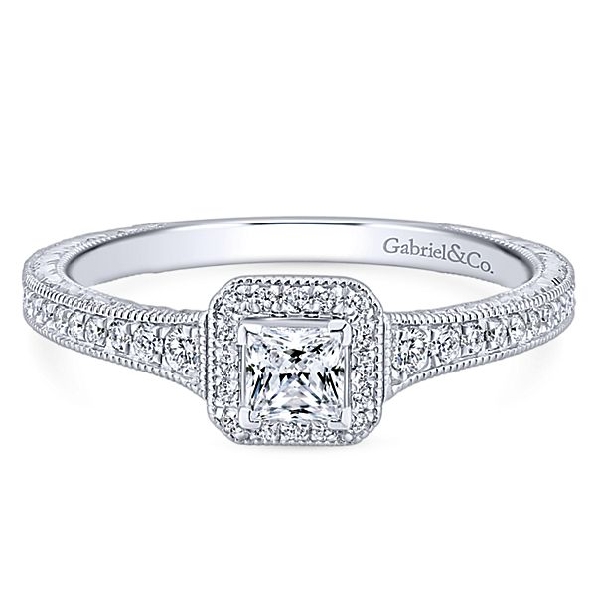 0.36ctw Princess Cut Diamond and Round Diamond SI2 Clarity; GH Colour Engraved 14K White Gold Adore Ring by Gabriel & Co. - Serial No. 764720