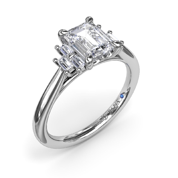 0.29ctw Baguette Diamond VS-SI Clarity; FG Colour Stepped Shoulder Stones with Emerald Cut Cubic Zirconia Centre 14K White Gold Ring Mount by Fana