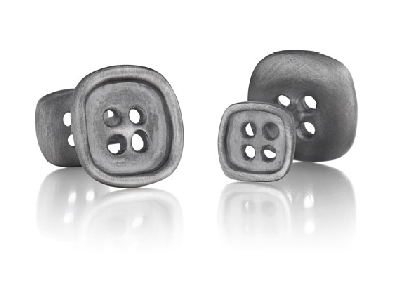 Brushed Sterling Silver with Black Rhodium Square Button Cuff Links by Robin Rotenier. - 50% off - Final Sale