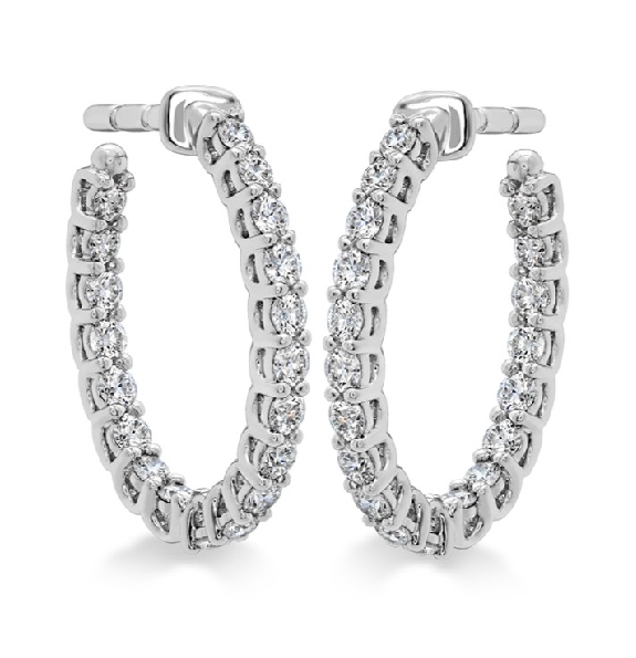 0.64ctw Hearts on Fire Diamond VS-SI Clarity; GH Colour Signature Oval 18K White Gold Hoop Earrings