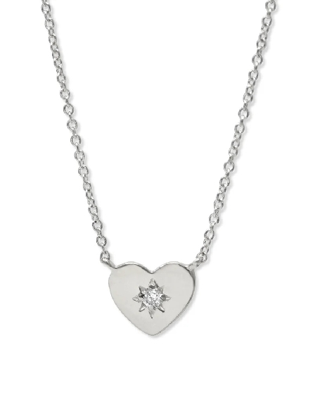 High Polish Heart with 2mm White Sapphire Star Set Sterling Silver Necklace - 16 - 17 Inch - from the Jac and Jo Collection by Anzie